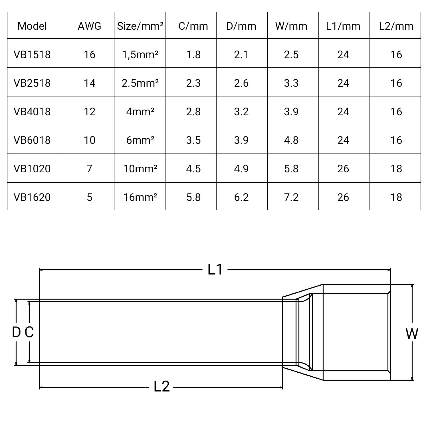 Cable End Sleeves VBxx18R